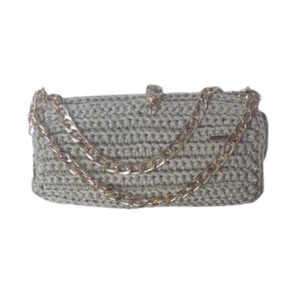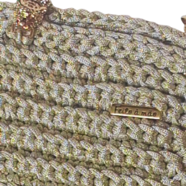 legante e cheia de personalidade, essa bolsa em malha bege com fios dourados é a escolha perfeita para quem ama peças artesanais com toque moderno e sofisticado.