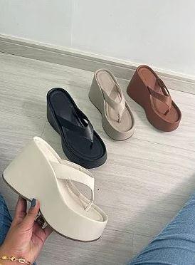 Sandália Anabela, modelo tamanco de dedo, com salto tamanho 10cm atrás e 4cm na frente