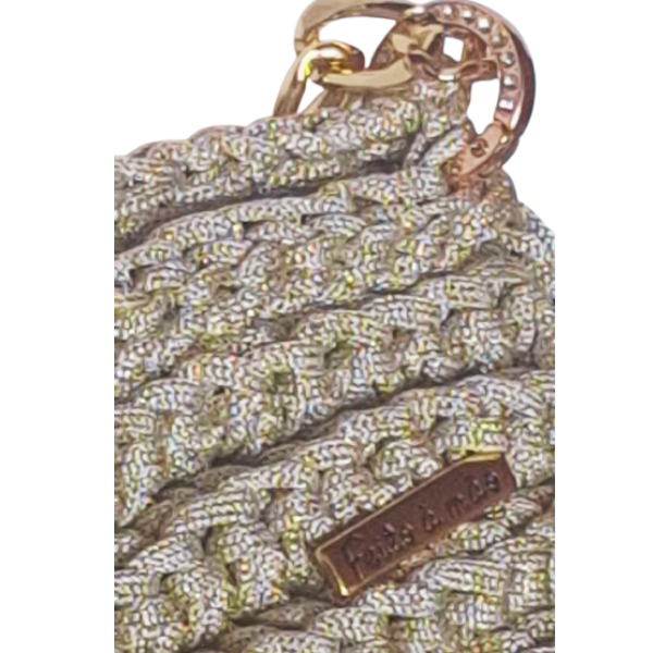 legante e cheia de personalidade, essa bolsa em malha bege com fios dourados é a escolha perfeita para quem ama peças artesanais com toque moderno e sofisticado.