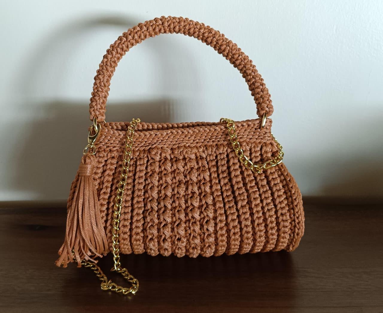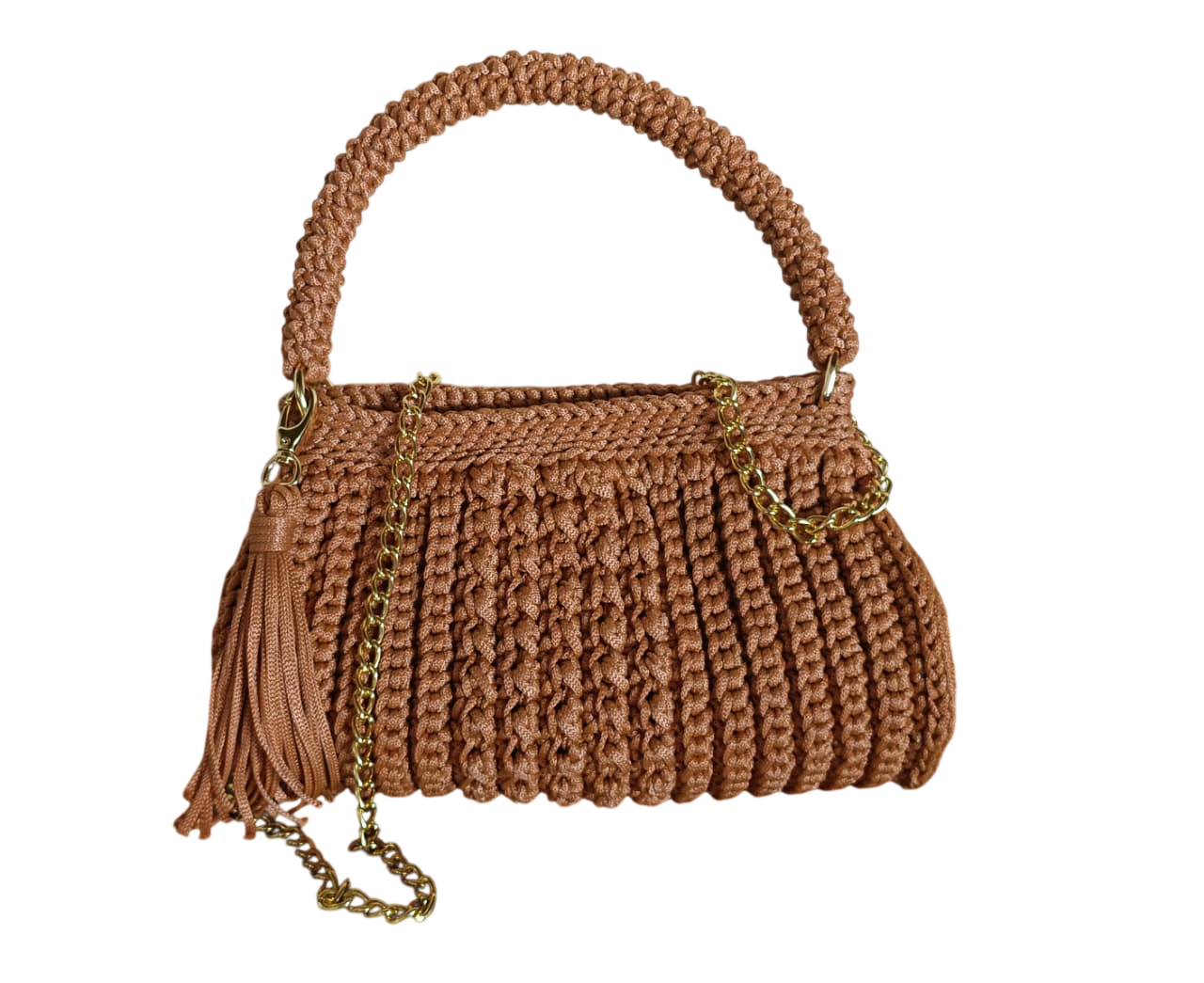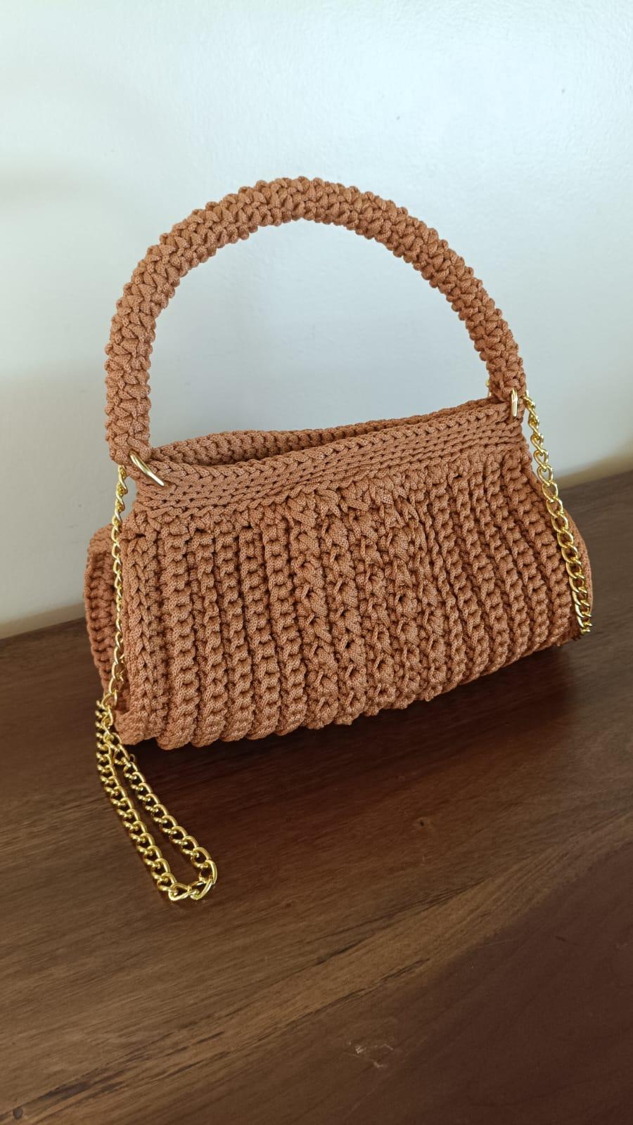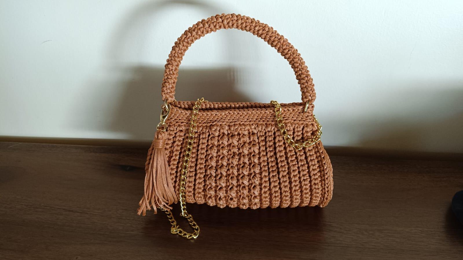 A Bolsa SK Fantasia – Edição Terracota é confeccionada em fio náutico 5mm na tonalidade Terracota 7529, sua estrutura é naturalmente firme e encorpada, dispensando reforços internos e mantendo a elegância da modelagem.
