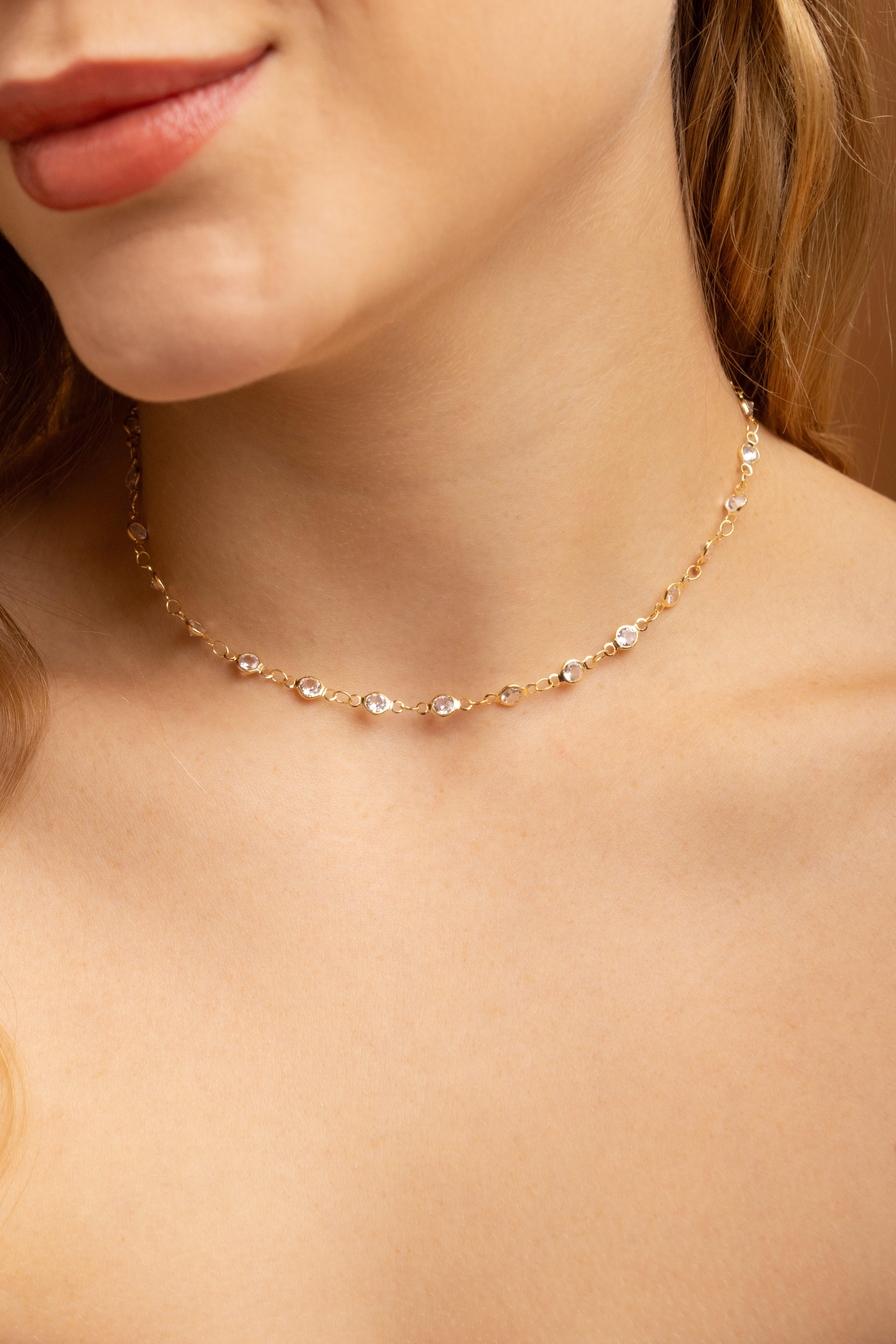 A Choker Ponto de Luz banhado a ouro 18k a escolha perfeita para quem busca sofisticação e delicadeza em um único acessório. Seu design minimalista com brilho sutil destaca qualquer visual, do casual ao formal. Um toque de luz que transforma seu look.