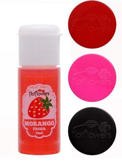 Gel Hot Aromatizantes 10ml: no sabor Morango com efeito de aquecimento e toque saboroso para massagens sensuais e sexo oral.